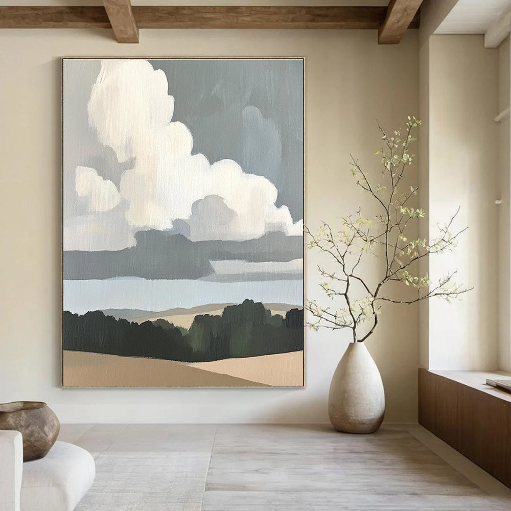 The artist sought to capture the calm of a cloudy sky with simple shapes and muted tones. By reducing elements to essentials, they created a peaceful, meditative scene. In a modern home office, it provides a distraction - free, calming backdrop for focused work. In a serene bedroom, it enhances relaxation, letting you drift off under a tranquil sky.Handmade Acrylic/oil painting on canvas, Unframed/Not stretched. Packing: Rolled and shipped in a solid tube. The painting come with EXTRA 2-3 inch white border around for stretching or framing. Delivery time: You will receive the painting around 7-12 days( 3-5 days to finish the painting, 5-7 days to your home.by Fedex And Dhl)
