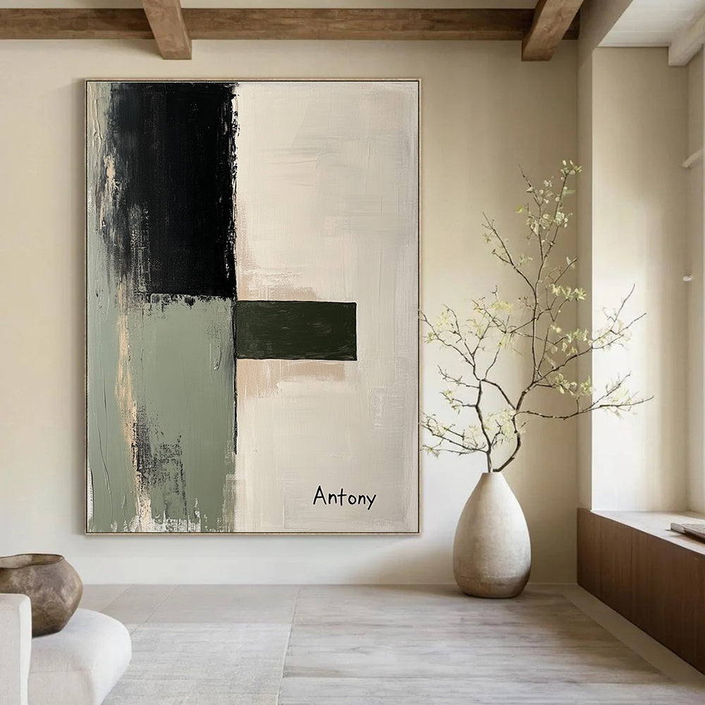 This artwork is a study in simplicity and form. The artist aimed to create a sense of calm and order through the use of geometric shapes and a muted color palette. Each shape is carefully placed to achieve a balanced composition, inviting the viewer to appreciate the beauty of minimalism. Ideal for an office, where its understated elegance can enhance focus, or a living room, adding a touch of modern sophistication to your space.Handmade Acrylic/oil painting on canvas, Unframed/Not stretched. Packing: Rolled and shipped in a solid tube. The painting come with EXTRA 2-3 inch white border around for stretching or framing. Delivery time: You will receive the painting around 7-12 days( 3-5 days to finish the painting, 5-7 days to your home.by Fedex And Dhl)