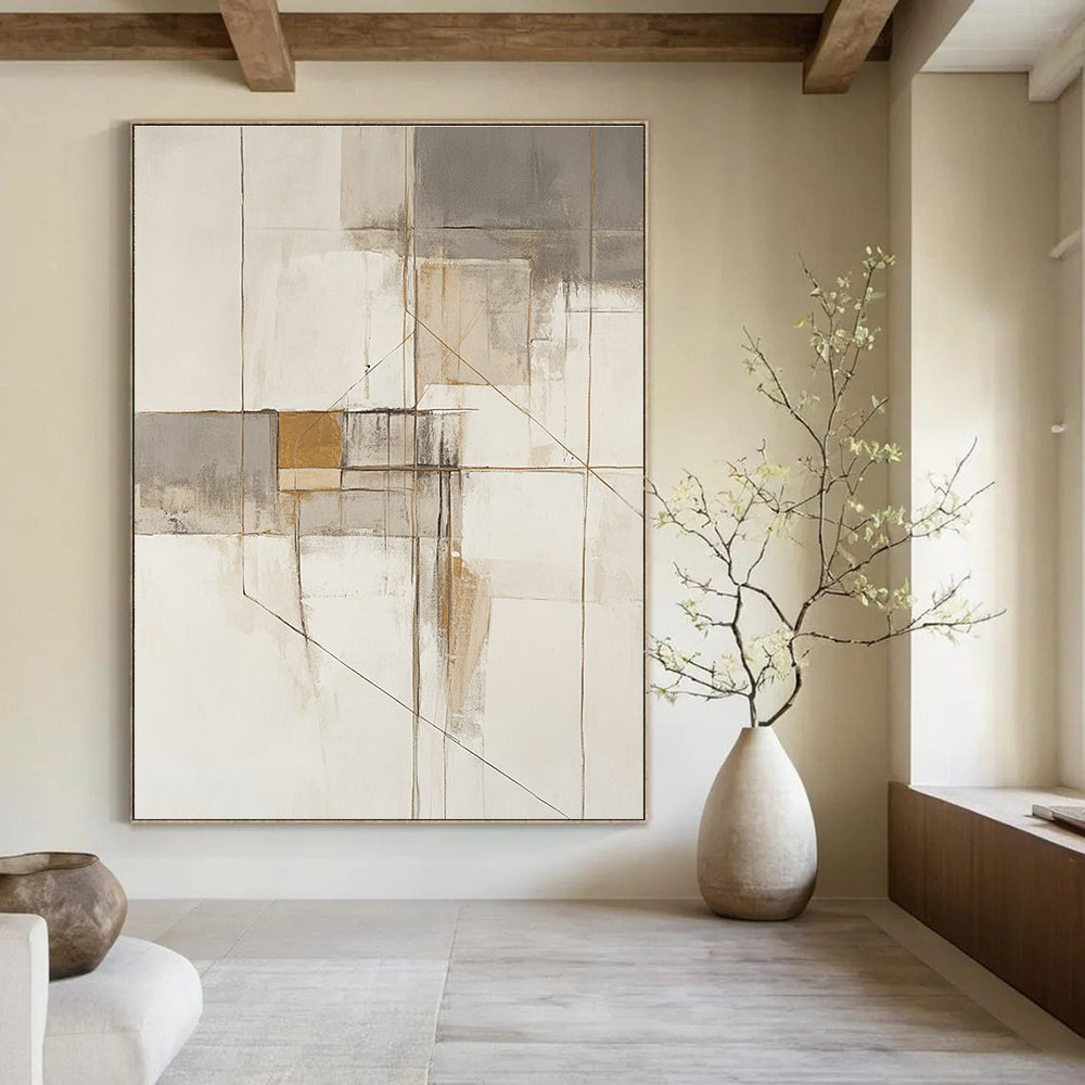 The artist aimed to explore simplicity and structure. Using soft neutrals and clean lines, they built a composition that feels both ordered and airy. Layers of paint create subtle texture, inviting quiet contemplation. Perfect for a modern office to promote focus or a Scandinavian - style home to enhance its minimalist, serene aesthetic.Handmade Acrylic/oil painting on canvas, Unframed/Not stretched. Packing: Rolled and shipped in a solid tube. The painting come with EXTRA 2-3 inch white border around for stretching or framing. Delivery time: You will receive the painting around 7-12 days( 3-5 days to finish the painting, 5-7 days to your home.by Fedex And Dhl)