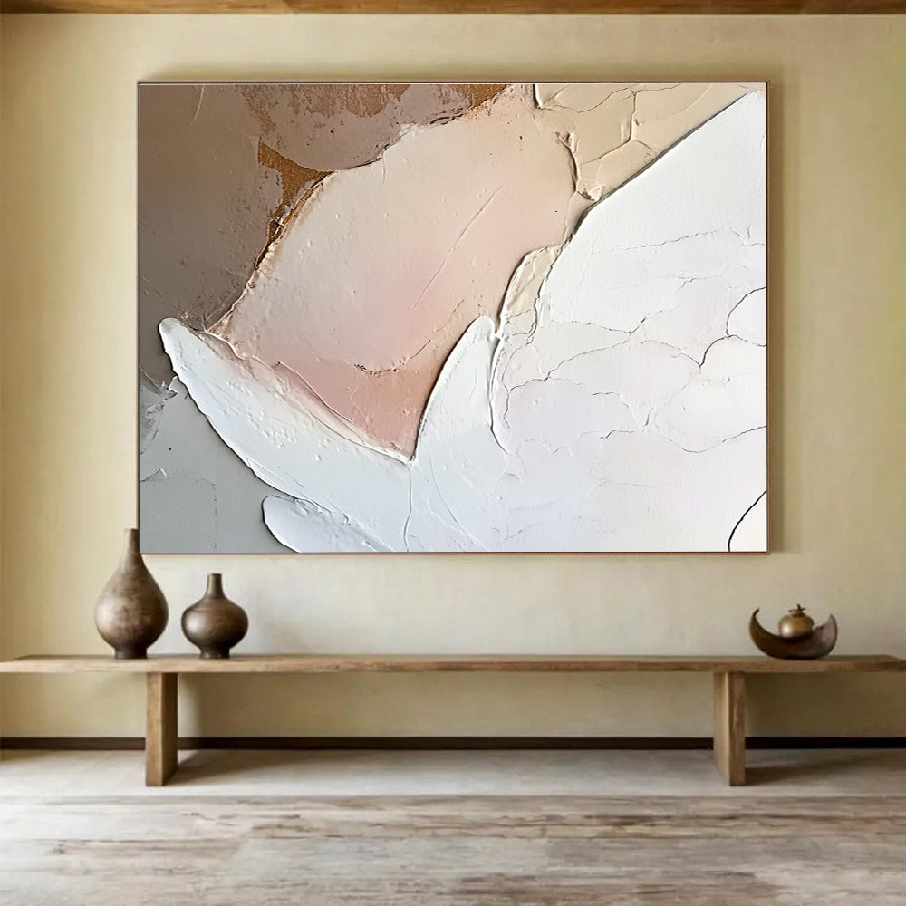 Drawn to simplicity and touch, the artist used soft pink, beige, and white with plaster - like texture. It’s about quiet, tactile beauty. Great for a Scandinavian bedroom to add understated calm or a modern gallery to exhibit minimalist texture art.Handmade Acrylic/oil painting on canvas, Unframed/Not stretched. Packing: Rolled and shipped in a solid tube. The painting come with EXTRA 2-3 inch white border around for stretching or framing. Delivery time: You will receive the painting around 7-12 days( 3-5 days to finish the painting, 5-7 days to your home.by Fedex And Dhl)