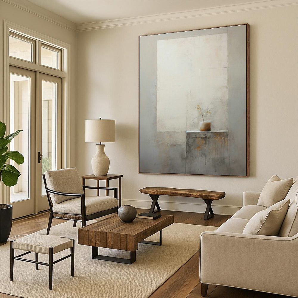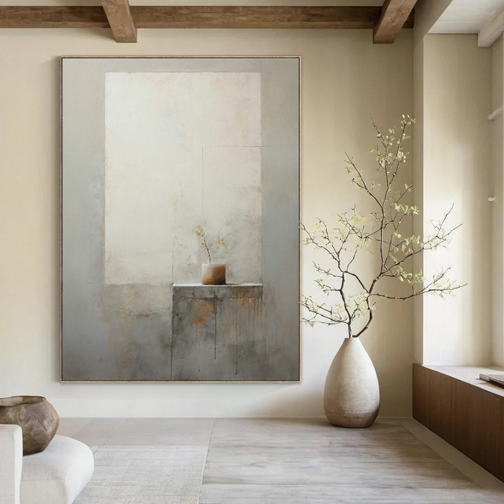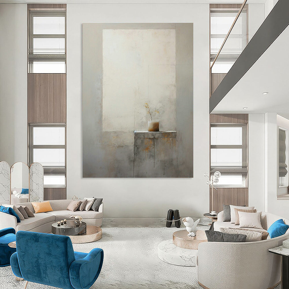 A simple vase and neutral tones embody quiet sophistication. In a studio apartment, hang it in the living - dining combo space – the minimalist design doesn’t overwhelm the small area, adding a touch of elegance to multi - use living. At a coffee roaster, display it near the roasting equipment – the understated art balances the industrial space, giving customers a moment of calm as they watch beans roast, turning a functional area into a subtly artistic one.Handmade Acrylic/oil painting on canvas, Unframed/Not stretched. Packing: Rolled and shipped in a solid tube. The painting come with EXTRA 2-3 inch white border around for stretching or framing. Delivery time: You will receive the painting around 7-12 days( 3-5 days to finish the painting, 5-7 days to your home.by Fedex And Dhl)