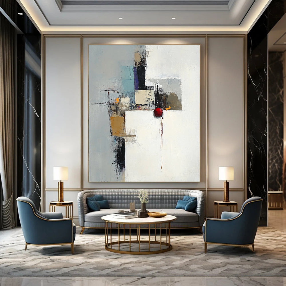 Mixed Media Abstract with Red Sphere for Contemporary Art Gallery & Eclectic Home STSC615