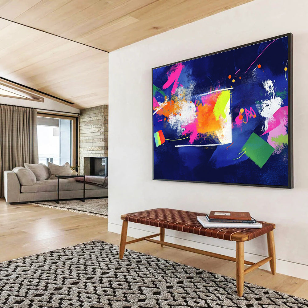 Inspired by vibrant nightlife, the artist uses bold neon hues and dynamic shapes. It injects energy, perfect for a trendy nightclub to amp up the vibe or a creative studio to spark innovative ideas.Handmade Acrylic/oil painting on canvas, Unframed/Not stretched. Packing: Rolled and shipped in a solid tube. The painting come with EXTRA 2-3 inch white border around for stretching or framing. Delivery time: You will receive the painting around 7-12 days( 3-5 days to finish the painting, 5-7 days to your home.by Fedex And Dhl)