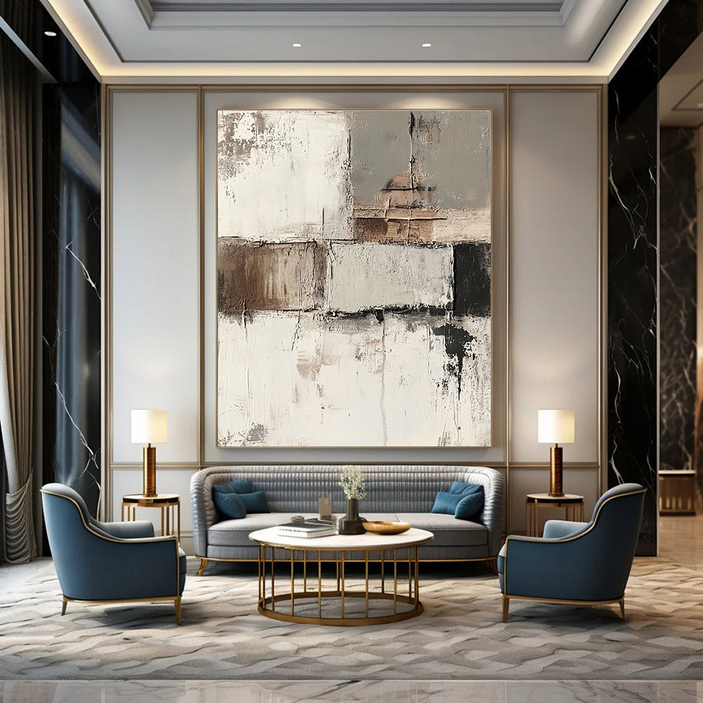 Inspired by the beauty of simplicity and neutral palettes, the artist pieced together soft tones. The texture is like a cozy quilt, bringing warmth. Ideal for a Scandinavian - style bedroom to create a peaceful vibe or a modern home library to add a touch of understated elegance.Handmade Acrylic/oil painting on canvas, Unframed/Not stretched. Packing: Rolled and shipped in a solid tube. The painting come with EXTRA 2-3 inch white border around for stretching or framing. Delivery time: You will receive the painting around 7-12 days( 3-5 days to finish the painting, 5-7 days to your home.by Fedex And Dhl)
