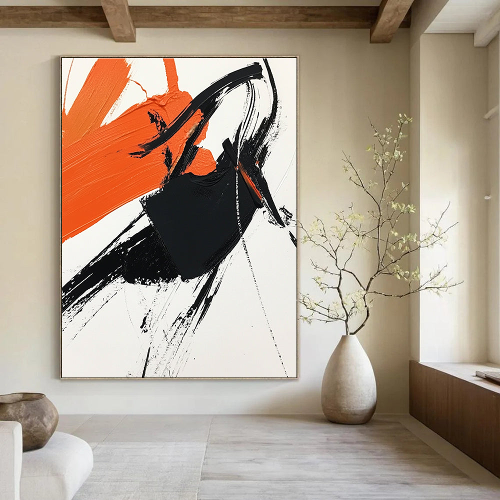 Inspired by the freedom of abstract expression, the artist let the bold orange and black strokes flow, creating a dynamic composition. It’s designed to inspire creativity. In a contemporary office, it adds an energetic vibe, boosting productivity. In an art studio, it serves as a source of inspiration, encouraging artists to explore bold color and form.Handmade Acrylic/oil painting on canvas, Unframed/Not stretched. Packing: Rolled and shipped in a solid tube. The painting come with EXTRA 2-3 inch white border around for stretching or framing. Delivery time: You will receive the painting around 7-12 days( 3-5 days to finish the painting, 5-7 days to your home.by Fedex And Dhl)