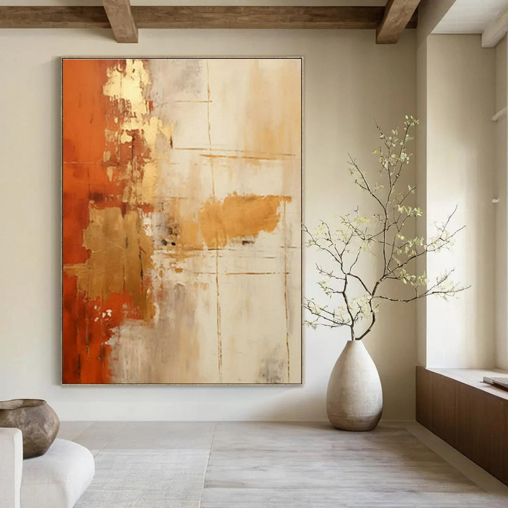 Warm oranges and shimmering golds blend with soft neutrals, creating an air of opulence. In a luxury hotel lobby, it welcomes guests with a touch of grandeur. The rich hues and abstract forms set a sophisticated tone, making arrivals feel special. In an upscale home living room, it becomes a centerpiece. Whether hosting elegant dinners or enjoying quiet evenings, the painting adds warmth and artistic flair, elevating the space’s ambiance.Handmade Acrylic/oil painting on canvas, Unframed/Not stretched. Packing: Rolled and shipped in a solid tube. The painting come with EXTRA 2-3 inch white border around for stretching or framing. Delivery time: You will receive the painting around 7-12 days( 3-5 days to finish the painting, 5-7 days to your home.by Fedex And Dhl)