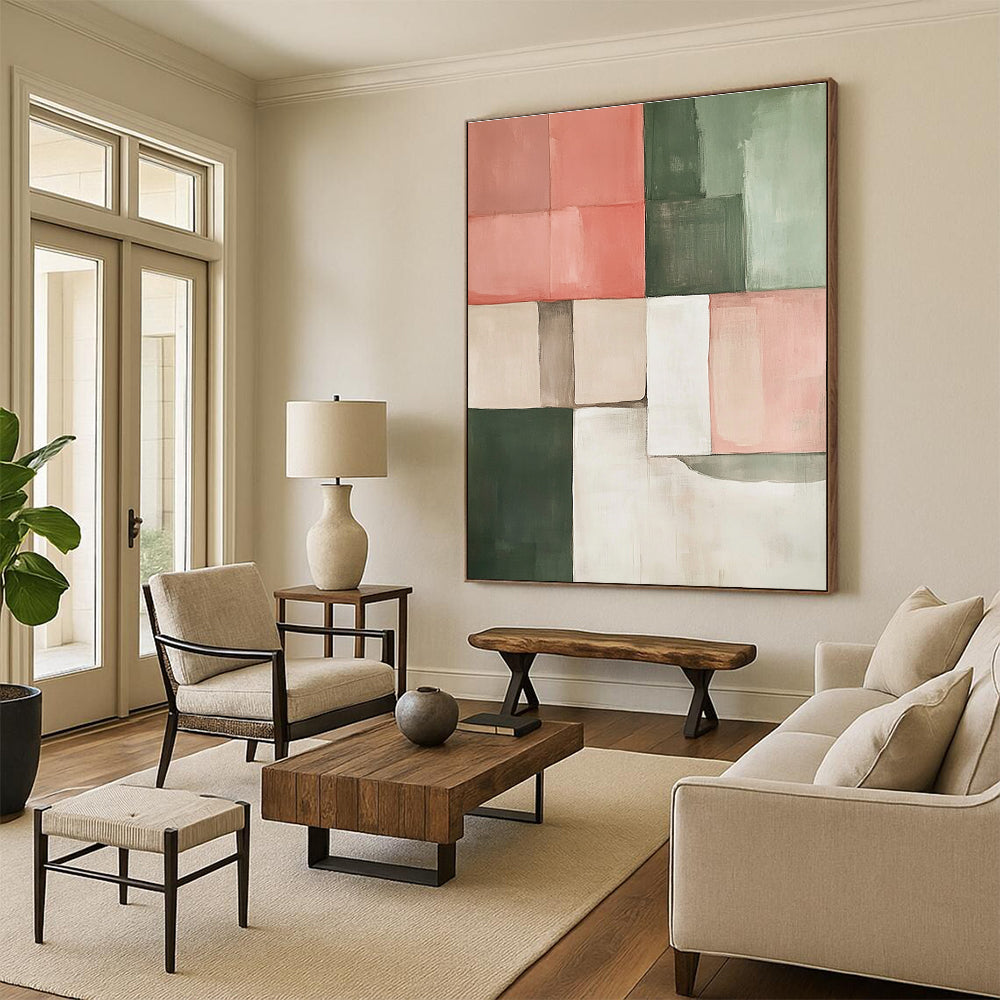 The artist sought to add a pop of color with a geometric design. The pink and green create a vibrant contrast. Great for a trendy caf茅 to attract customers or a modern home to add a fashionable element.Handmade Acrylic/oil painting on canvas, Unframed/Not stretched. Packing: Rolled and shipped in a solid tube. The painting come with EXTRA 2-3 inch white border around for stretching or framing. Delivery time: You will receive the painting around 7-12 days( 3-5 days to finish the painting, 5-7 days to your home.by Fedex And Dhl)