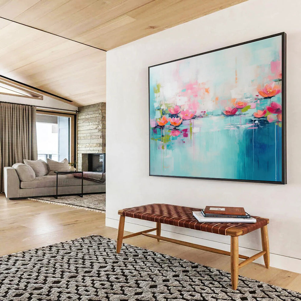 Turn your bathroom into a spa - like retreat with this pink - blue water lily abstract art. Soft, aquatic hues and dreamy brushstrokes evoke tranquility. It adds a touch of luxury to your self - care space, making every bath feel like a peaceful escape.Handmade Acrylic/oil painting on canvas, Unframed/Not stretched. Packing: Rolled and shipped in a solid tube. The painting come with EXTRA 2-3 inch white border around for stretching or framing. Delivery time: You will receive the painting around 7-12 days( 3-5 days to finish the painting, 5-7 days to your home.by Fedex And Dhl)