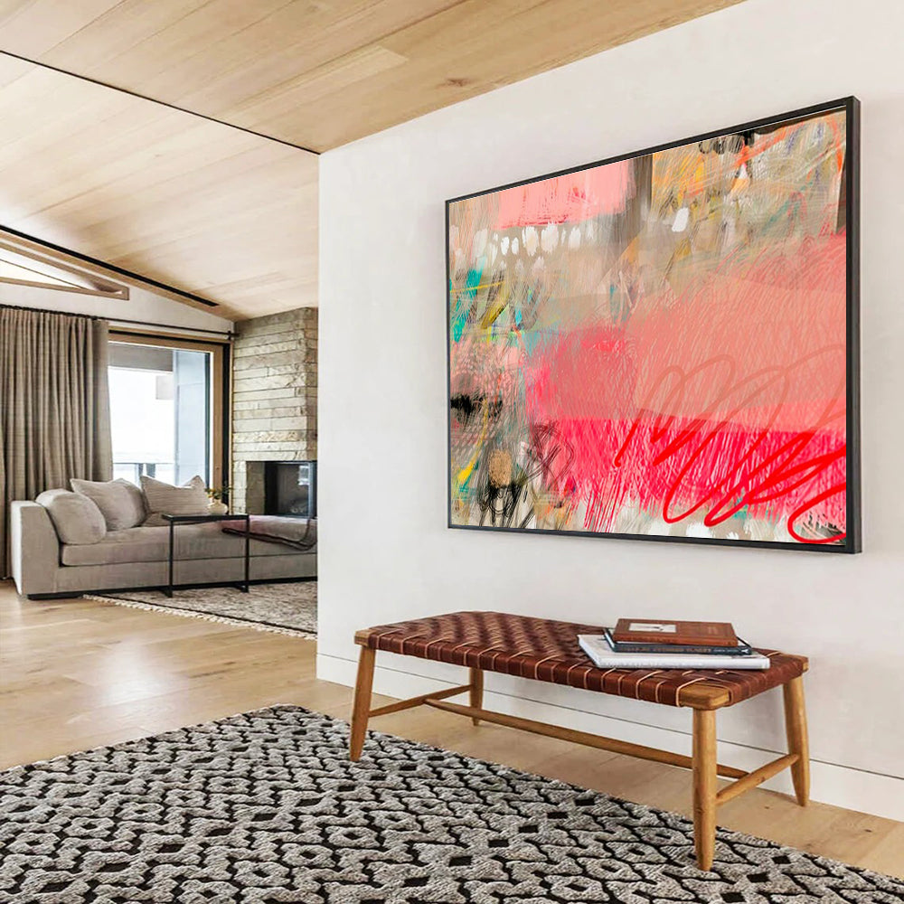 Add a minimalist touch to home yoga studio corners with this pink - gray abstract art. Soft, muted tones and simple forms promote focus. Ideal for a home yoga space, it turns the corner into a serene, artistic nook, enhancing your practice with a calming, visually appealing backdrop.Handmade Acrylic/oil painting on canvas, Unframed/Not stretched. Packing: Rolled and shipped in a solid tube. The painting come with EXTRA 2-3 inch white border around for stretching or framing. Delivery time: You will receive the painting around 7-12 days( 3-5 days to finish the painting, 5-7 days to your home.by Fedex And Dhl)