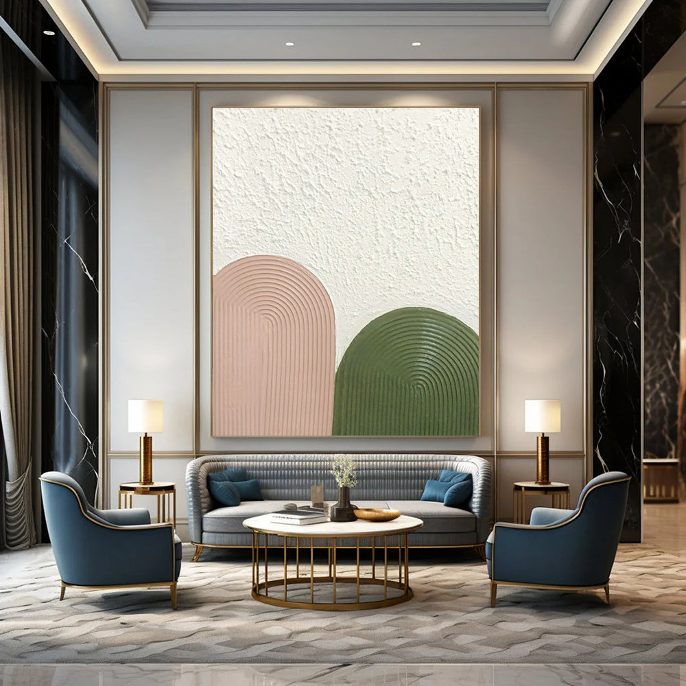 Pastel pink and green raised curves create a whimsical, bohemian vibe. In a bohemian nursery, it adds a playful touch to the baby’s space, pairing with macramé mobiles and soft, colorful rugs. The gentle colors and tactile design stimulate a child’s senses, making it a perfect decor for naptime or play. In a home garden room, it complements potted plants and natural light, bringing the outdoors inside. The organic shapes and soothing hues create a calming atmosphere for reading or enjoying morning coffee. Whether in a cozy nursery or a sunlit garden room, this art celebrates nature and whimsy, turning every space into a haven of creativity and relaxation.Handmade Acrylic/oil painting on canvas, Unframed/Not stretched. Packing: Rolled and shipped in a solid tube. The painting come with EXTRA 2-3 inch white border around for stretching or framing. Delivery time: You will receive the painting around 7-12 days( 3-5 days to finish the painting, 5-7 days to your home.by Fedex And Dhl)