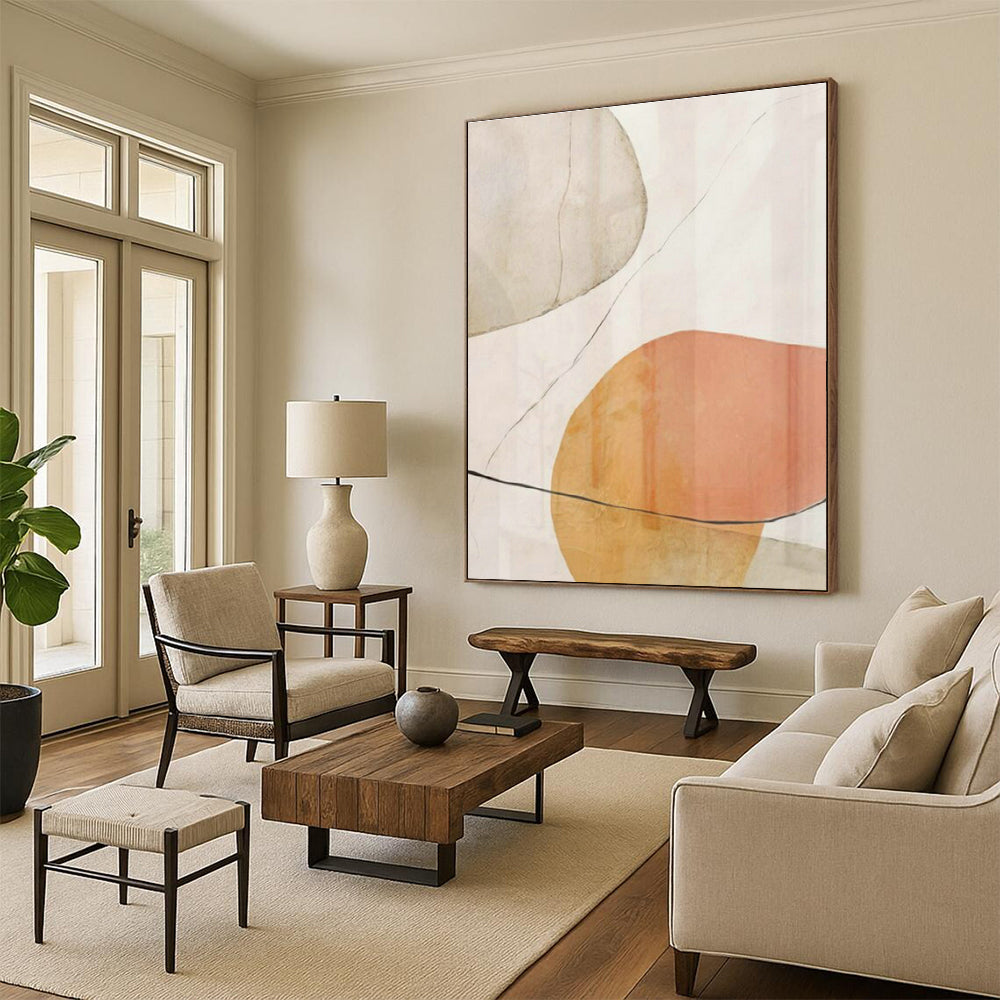 Featuring soft pink and orange tones with geometric shapes, this art suits feminine and creative spaces. In a feminine boutique, it adds a touch of elegance and playfulness to the decor. The colors can attract female customers, creating a welcoming and stylish shopping environment. Hang it near the display windows or in the dressing area to enhance the boutique’s aesthetic. In a creative studio, it inspires creativity and innovation. The combination of pink and orange can stimulate the imagination, making it an ideal addition to the workspace. It can be placed in a design studio or a creative lounge to encourage creative thinking. Whether in a boutique for a feminine shopping experience or in a studio for creative inspiration, this art brings a charming and creative vibe.Handmade Acrylic/oil painting on canvas, Unframed/Not stretched. Packing: Rolled and shipped in a solid tube. The painting come with EXTRA 2-3 inch white border around for stretching or framing. Delivery time: You will receive the painting around 7-12 days( 3-5 days to finish the painting, 5-7 days to your home.by Fedex And Dhl)