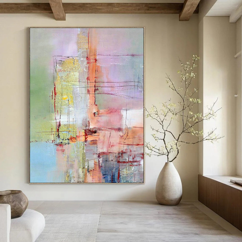 Soft pastel tones create a dreamy atmosphere in the bedroom, perfect for unwinding. In the entryway, it welcomes guests with a gentle, artistic touch, setting a positive tone.Handmade Acrylic/oil painting on canvas, Unframed/Not stretched. Packing: Rolled and shipped in a solid tube. The painting come with EXTRA 2-3 inch white border around for stretching or framing. Delivery time: You will receive the painting around 7-12 days( 3-5 days to finish the painting, 5-7 days to your home.by Fedex And Dhl)