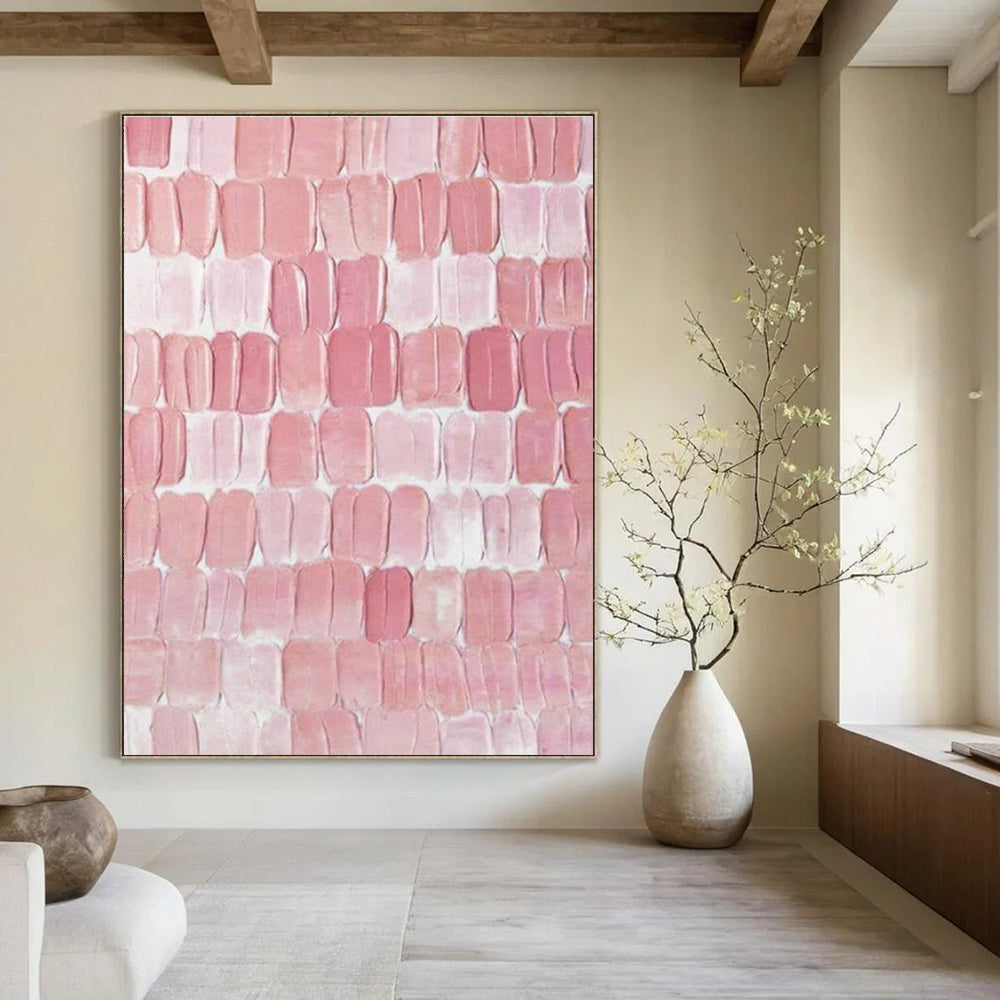 Soft pinks, tactile dots. Create a sweet, cozy nook for getting ready in bedrooms.Handmade Acrylic/oil painting on canvas, Unframed/Not stretched. Packing: Rolled and shipped in a solid tube. The painting come with EXTRA 2-3 inch white border around for stretching or framing. Delivery time: You will receive the painting around 7-12 days( 3-5 days to finish the painting, 5-7 days to your home.by Fedex And Dhl)