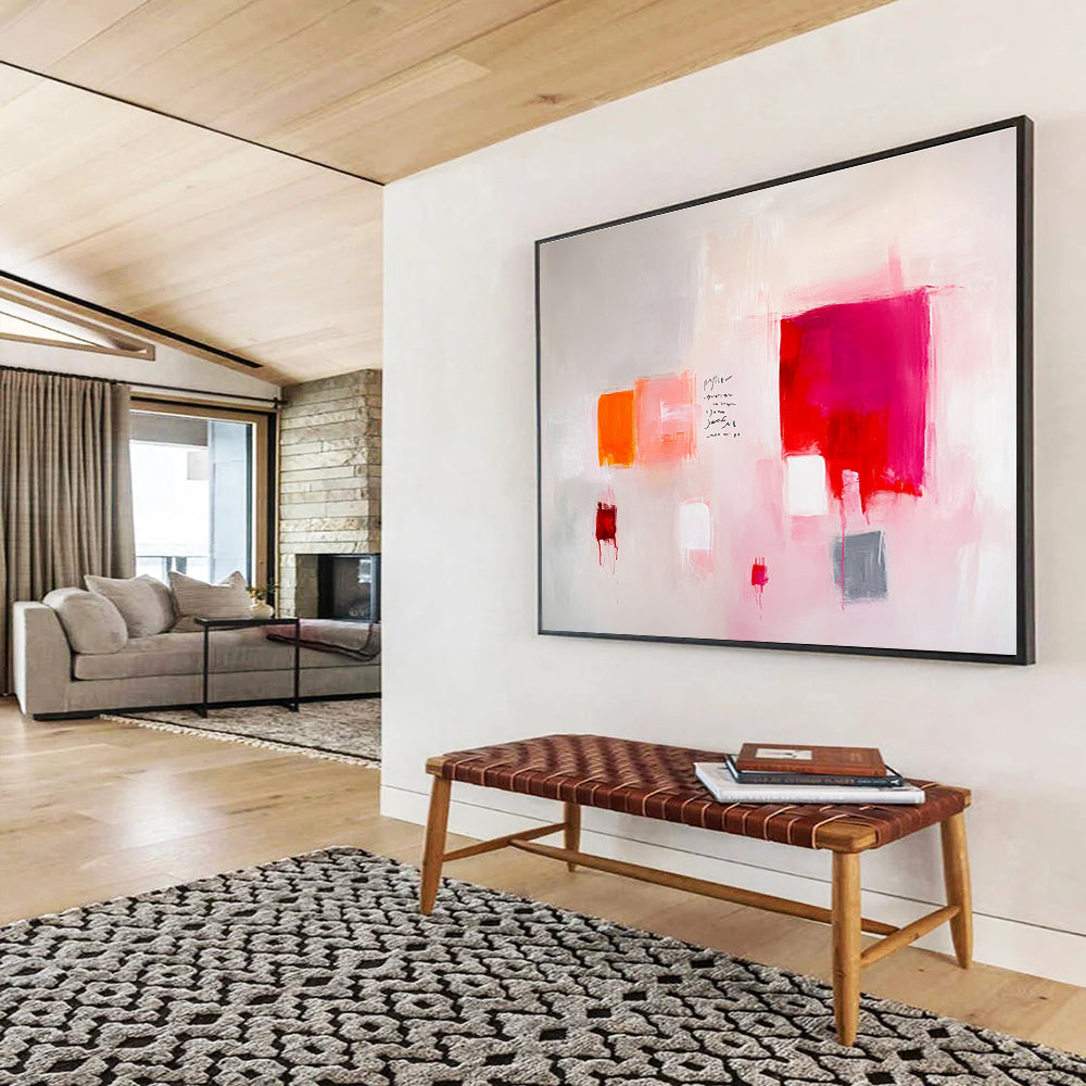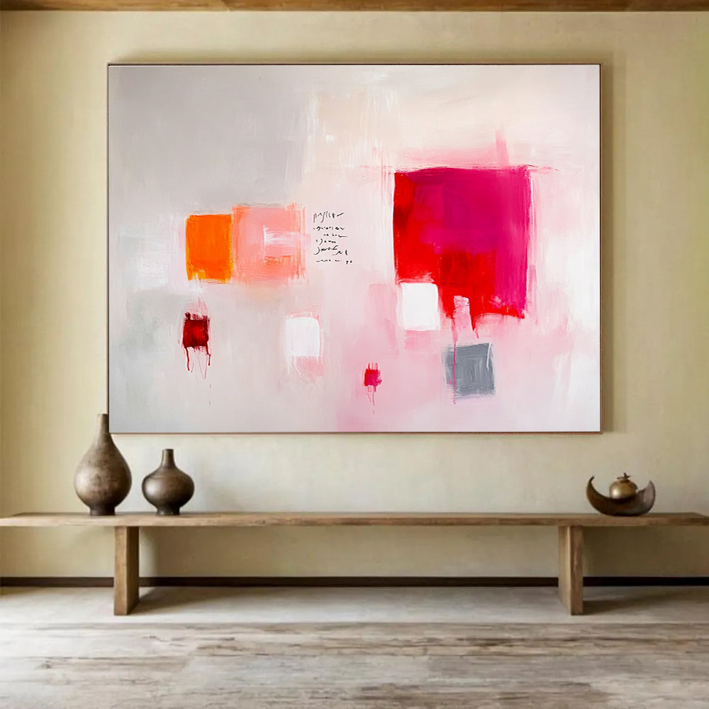 Pink - Toned Abstract with Text Art for Bohemian - Style Bedroom & Creative Writing Studio SC242
