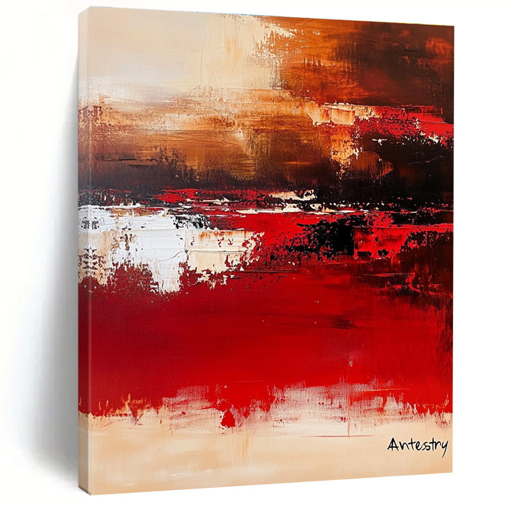 Red and Brown Abstract Landscape for Rustic - Modern Home & Cozy Wine Lounge STSC458