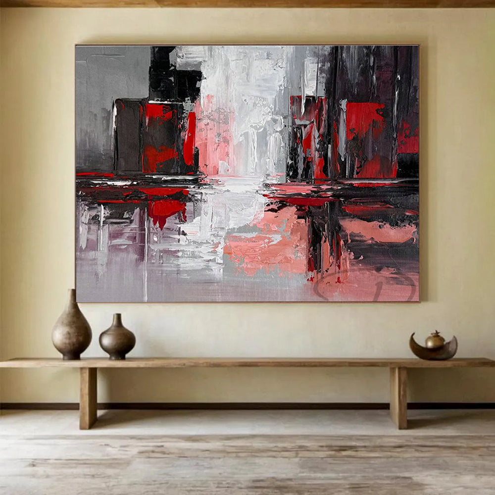 Boost creativity in industrial loft home offices with this red - gray urban abstract art. Bold colors and stark contrasts reflect city energy. Perfect for loft workspaces, it turns the office into a dynamic, artistic hub, inspiring focus and innovative ideas.Handmade Acrylic/oil painting on canvas, Unframed/Not stretched. Packing: Rolled and shipped in a solid tube. The painting come with EXTRA 2-3 inch white border around for stretching or framing. Delivery time: You will receive the painting around 7-12 days( 3-5 days to finish the painting, 5-7 days to your home.by Fedex And Dhl)