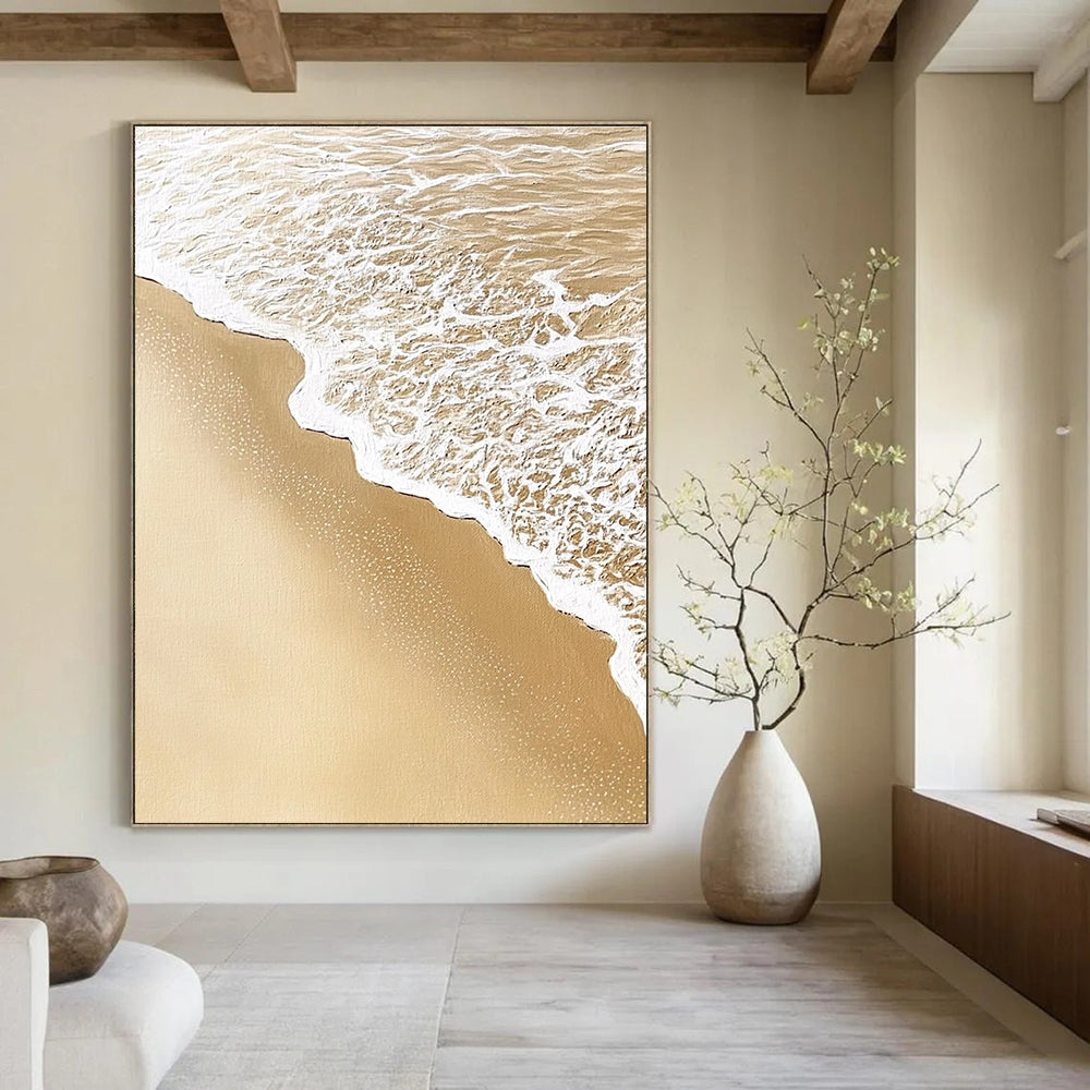 Captivated by the peaceful sight of waves lapping the shore, the artist meticulously recreated the texture of beach foam and sand. Using fine brushes and textured paint, they strived to capture the soothing essence of a quiet beach morning. In a coastal home bedroom, it extends the seaside theme, creating a restful space where one can almost hear the gentle waves. For a relaxing wellness retreat, it supports the focus on mindfulness and relaxation, transporting guests to a serene coastal haven.Handmade Acrylic/oil painting on canvas, Unframed/Not stretched. Packing: Rolled and shipped in a solid tube. The painting come with EXTRA 2-3 inch white border around for stretching or framing. Delivery time: You will receive the painting around 7-12 days( 3-5 days to finish the painting, 5-7 days to your home.by Fedex And Dhl)