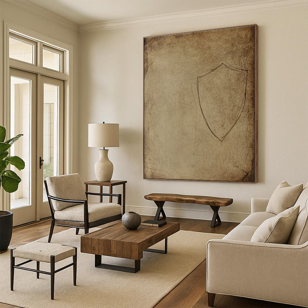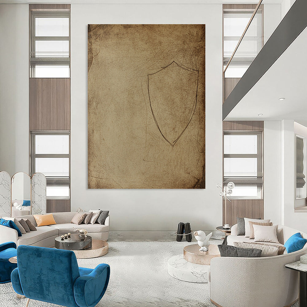 Fascinated by history and medieval symbolism, the artist drew a simple shield on a parchment - like paper. The aged texture and simple design aim to evoke a sense of the past. In a medieval - themed restaurant, it adds to the historical ambiance, making diners feel like they’ve stepped back in time. In a historical art collection, it represents a simple yet powerful symbol from history.Handmade Acrylic/oil painting on canvas, Unframed/Not stretched. Packing: Rolled and shipped in a solid tube. The painting come with EXTRA 2-3 inch white border around for stretching or framing. Delivery time: You will receive the painting around 7-12 days( 3-5 days to finish the painting, 5-7 days to your home.by Fedex And Dhl)