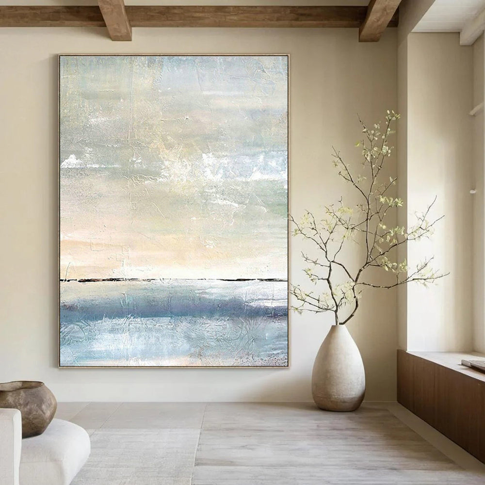 The seaside scene rendered with soft colors is as peaceful as the coast in the early - morning mist. In a relaxing bathroom, in the hazy water vapor, this painting brings a fresh sea breeze. When taking a bath, it's as if you are by the sea, relieving physical and mental stress. As a decoration for a coastal - style balcony, matched with a rattan chair and green plants, when the sun shines, the soft colors in the painting echo the real sea view, creating an exclusive leisure corner for viewing the sea. Enjoying tea and the view here in the afternoon is cozy and healing.Handmade Acrylic/oil painting on canvas, Unframed/Not stretched. Packing: Rolled and shipped in a solid tube. The painting come with EXTRA 2-3 inch white border around for stretching or framing. Delivery time: You will receive the painting around 7-12 days( 3-5 days to finish the painting, 5-7 days to your home.by Fedex And Dhl)