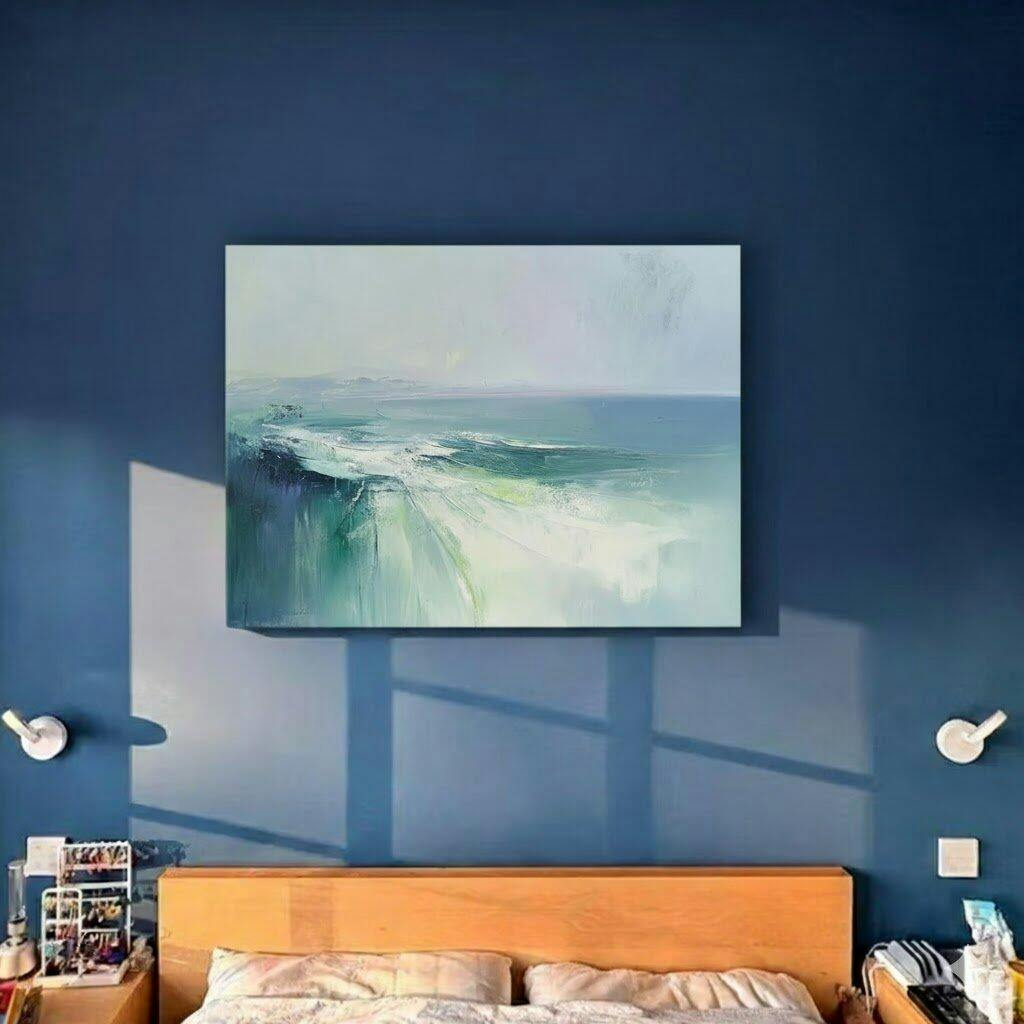 Drawn to the sea’s tranquility, the artist built soft color layers, creating a gentle, immersive ocean scene. It’s meant to soothe, ideal for a coastal wellness center to aid relaxation or a beach house bedroom to bring the sea’s calm indoors.Handmade Acrylic/oil painting on canvas, Unframed/Not stretched. Packing: Rolled and shipped in a solid tube. The painting come with EXTRA 2-3 inch white border around for stretching or framing. Delivery time: You will receive the painting around 7-12 days( 3-5 days to finish the painting, 5-7 days to your home.by Fedex And Dhl)