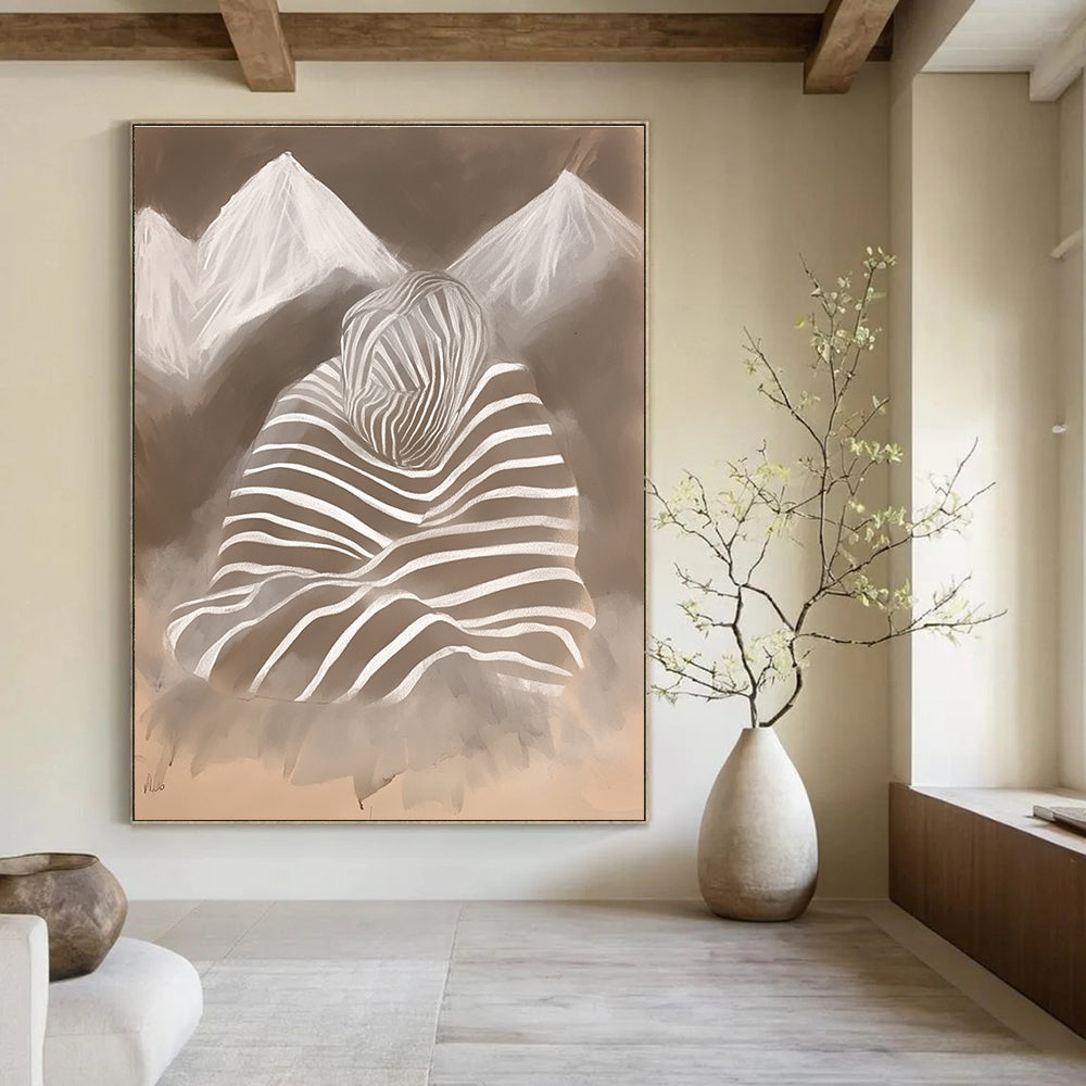 Motivated by surrealism and the power of the subconscious, the artist combined a striped figure with mountain shapes. The contrast of the organic mountains and the geometric stripes creates a thought - provoking visual. It challenges viewers to interpret the relationship between the figure and the landscape. In an avant - garde gallery, it stands out as a unique and conceptual piece, sparking discussions. In a thought - provoking home office, it inspires creativity and critical thinking, adding depth to workdays.Handmade Acrylic/oil painting on canvas, Unframed/Not stretched. Packing: Rolled and shipped in a solid tube. The painting come with EXTRA 2-3 inch white border around for stretching or framing. Delivery time: You will receive the painting around 7-12 days( 3-5 days to finish the painting, 5-7 days to your home.by Fedex And Dhl)