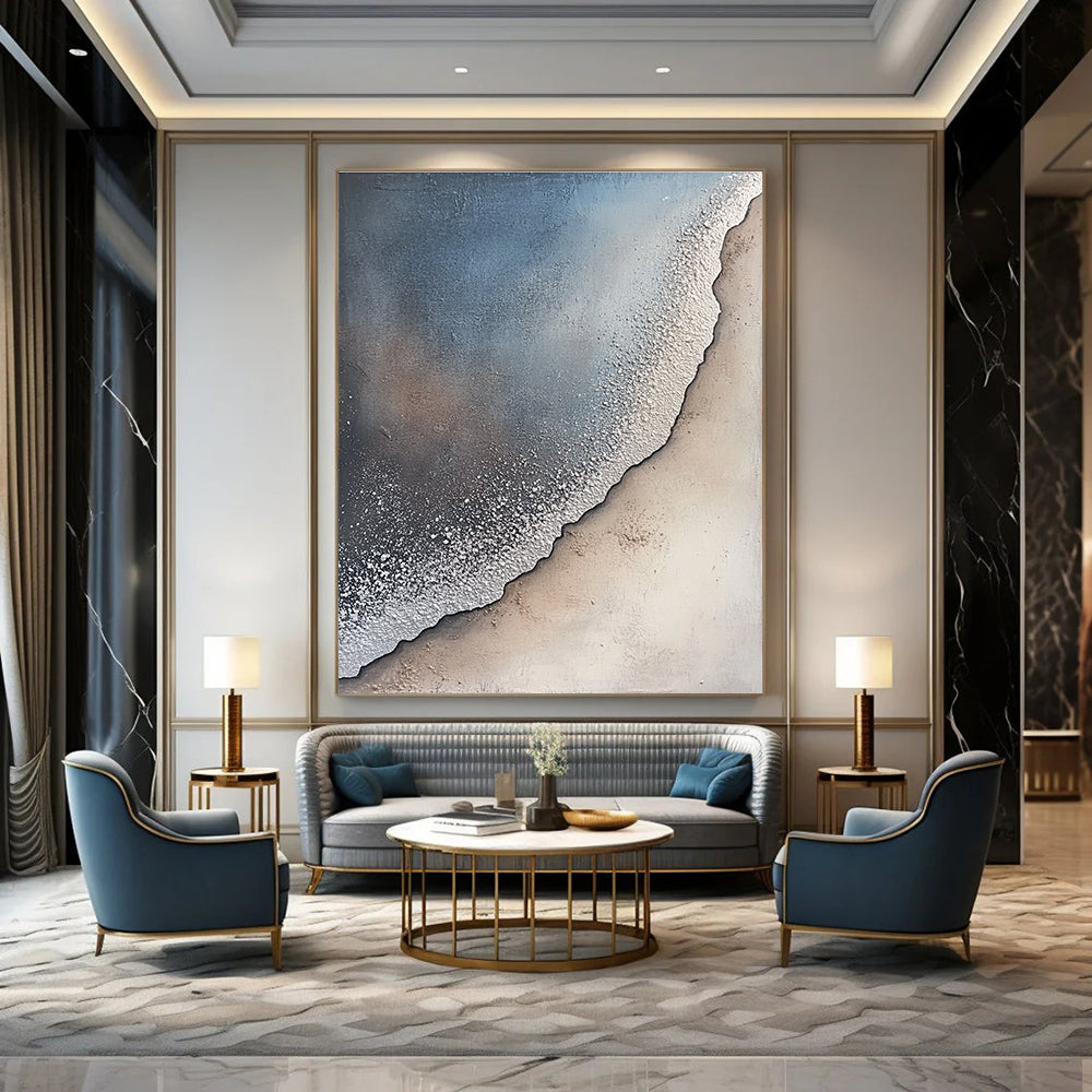 The artist wanted to recreate the feel of a beach with texture. The white “sand” and blue “water” bring a coastal vibe. Great for a coastal - style home to embrace the seaside or a relaxing spa to enhance tranquility.Handmade Acrylic/oil painting on canvas, Unframed/Not stretched. Packing: Rolled and shipped in a solid tube. The painting come with EXTRA 2-3 inch white border around for stretching or framing. Delivery time: You will receive the painting around 7-12 days( 3-5 days to finish the painting, 5-7 days to your home.by Fedex And Dhl)