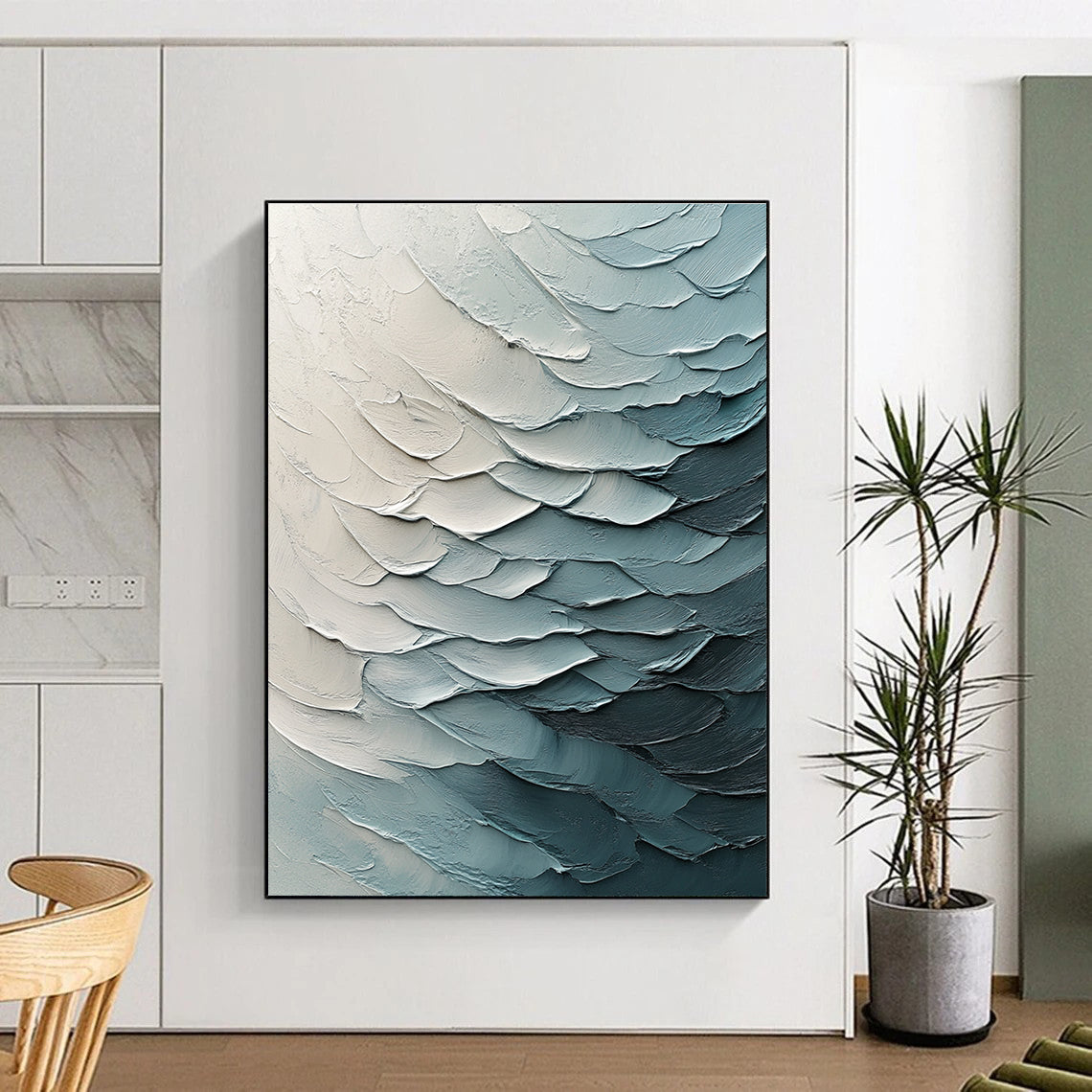 Inspired by calmness, the artist used smooth, textured layers of blue. The gentle gradients create a soothing effect. Perfect for a modern bathroom to enhance relaxation or a serene home office to promote focus.Handmade Acrylic/oil painting on canvas, Unframed/Not stretched. Packing: Rolled and shipped in a solid tube. The painting come with EXTRA 2-3 inch white border around for stretching or framing. Delivery time: You will receive the painting around 7-12 days( 3-5 days to finish the painting, 5-7 days to your home.by Fedex And Dhl)