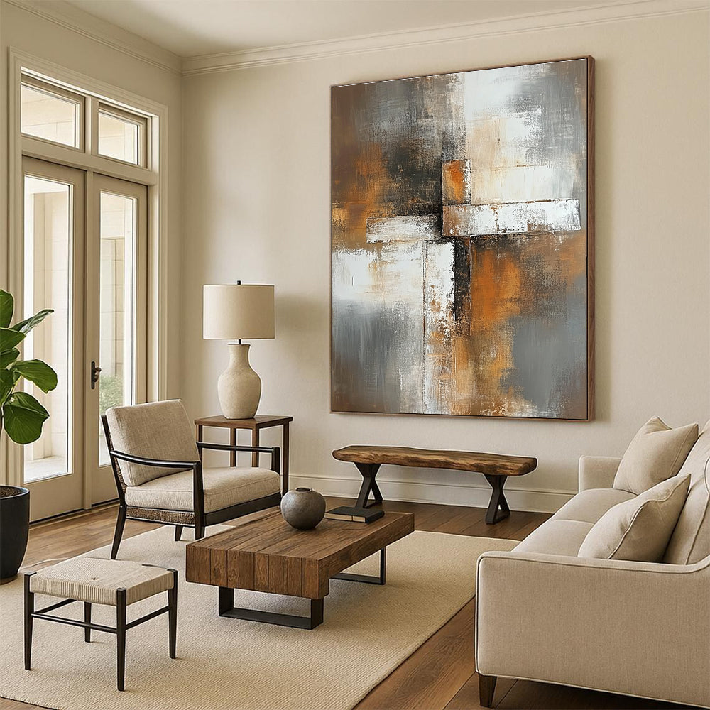 Inspired by industrial aesthetics, the artist used earthy tones and rough textures to form a cross - shaped centerpiece. Through repeated layering and scraping of paint, a weathered, vintage look was achieved. Ideal for an industrial - style café to enhance its edgy, artistic vibe or an art gallery corridor to draw visitors’ attention with its unique tactile appeal.Handmade Acrylic/oil painting on canvas, Unframed/Not stretched. Packing: Rolled and shipped in a solid tube. The painting come with EXTRA 2-3 inch white border around for stretching or framing. Delivery time: You will receive the painting around 7-12 days( 3-5 days to finish the painting, 5-7 days to your home.by Fedex And Dhl)