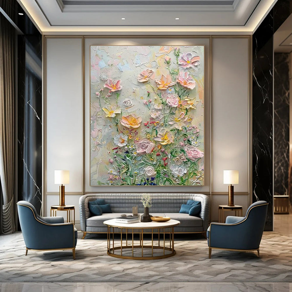 Textured Flower Field Art for Country Cottage Kitchen & Garden Party Venue DLZ1391