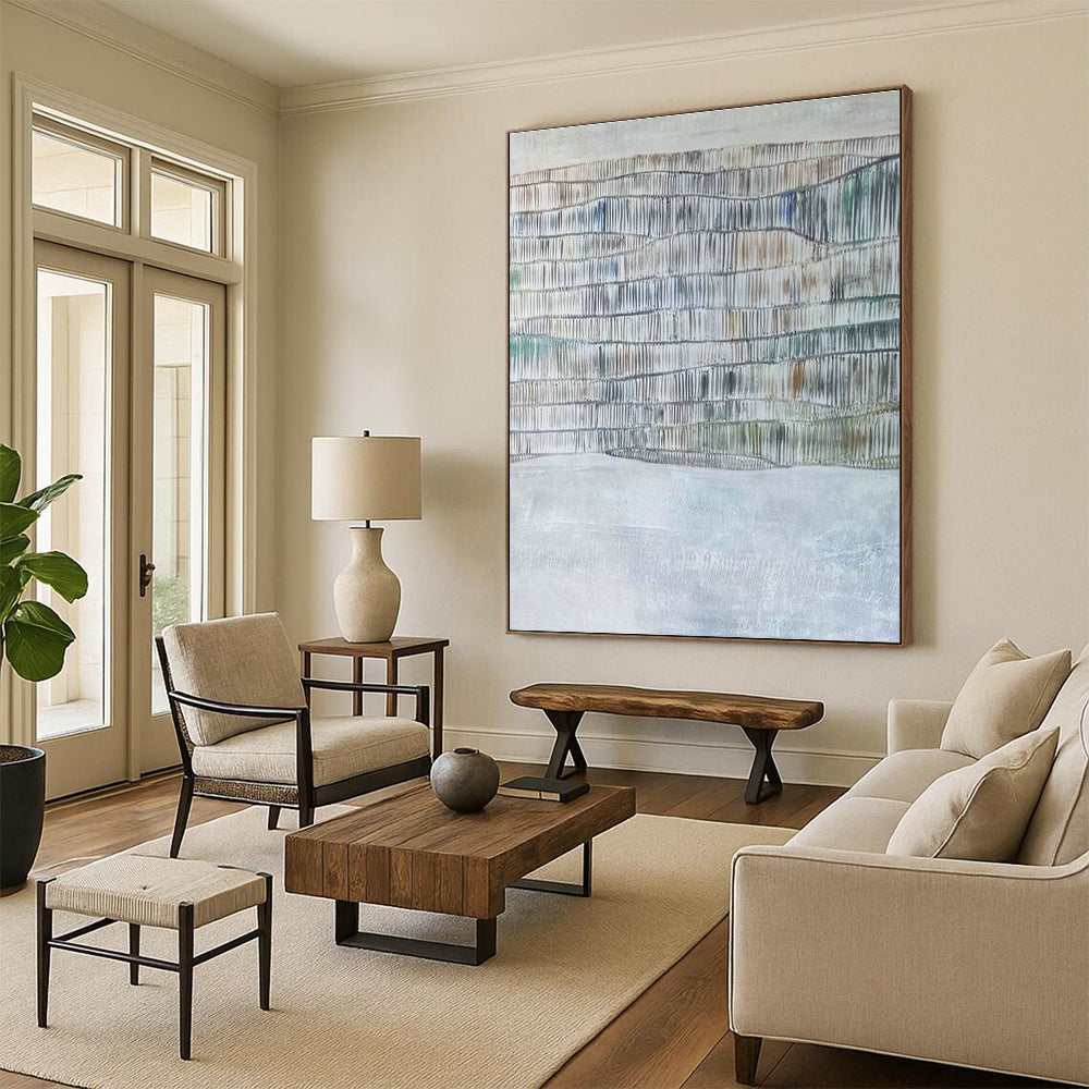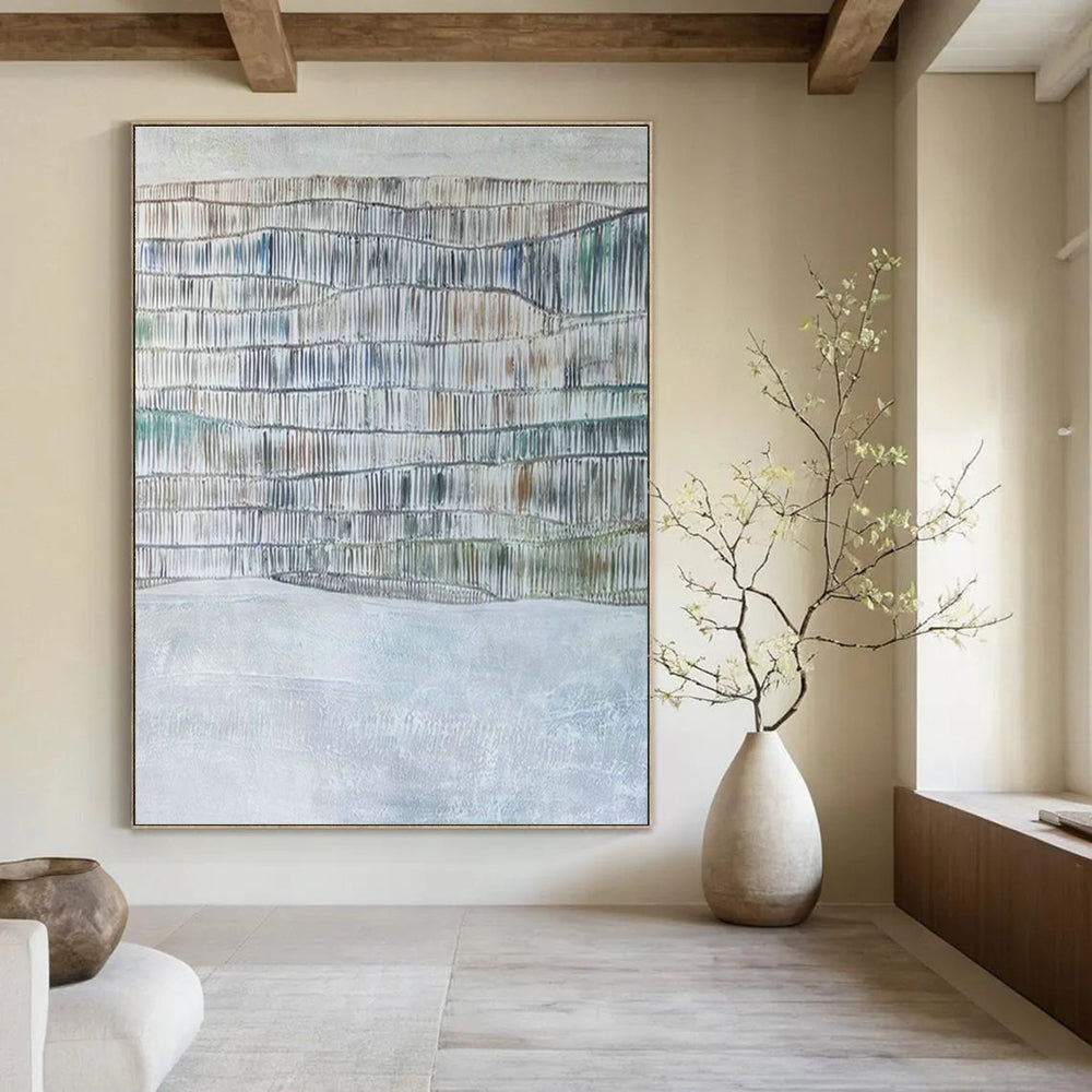 This artwork features delicate, wavy lines in shades of gray and white, creating a sense of calm and rhythm. In a minimalist living room, it becomes a focal point that complements clean lines and neutral tones, adding a touch of understated elegance. The subtle texture invites close appreciation, making it perfect for quiet evenings at home. In an art gallery, it stands out in a curated space, drawing visitors in with its minimalist yet intriguing design, sparking conversations about form and texture.Handmade Acrylic/oil painting on canvas, Unframed/Not stretched. Packing: Rolled and shipped in a solid tube. The painting come with EXTRA 2-3 inch white border around for stretching or framing. Delivery time: You will receive the painting around 7-12 days( 3-5 days to finish the painting, 5-7 days to your home.by Fedex And Dhl)