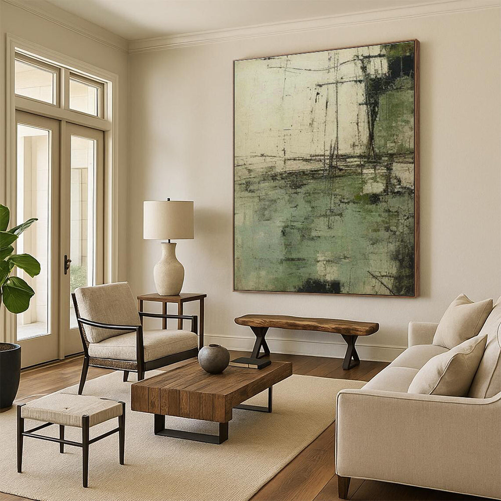 Layered greens, sketchy lines. Ignite creative flow in bohemian studios, blending art with nature.Handmade Acrylic/oil painting on canvas, Unframed/Not stretched. Packing: Rolled and shipped in a solid tube. The painting come with EXTRA 2-3 inch white border around for stretching or framing. Delivery time: You will receive the painting around 7-12 days( 3-5 days to finish the painting, 5-7 days to your home.by Fedex And Dhl)