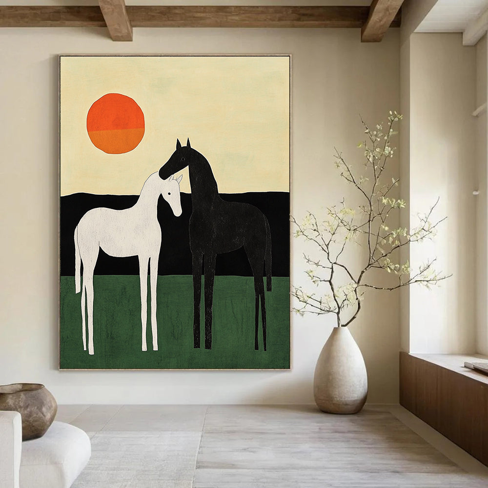 Motivated by the beauty of rural landscapes and the grace of horses, the artist depicted two horses against a sunset backdrop. It’s a celebration of nature and animal companionship. In a rustic farmhouse living room, it complements the country decor, bringing the outdoors inside. In an equestrian - themed club, it resonates with horse lovers, evoking a sense of admiration for these majestic animals.Handmade Acrylic/oil painting on canvas, Unframed/Not stretched. Packing: Rolled and shipped in a solid tube. The painting come with EXTRA 2-3 inch white border around for stretching or framing. Delivery time: You will receive the painting around 7-12 days( 3-5 days to finish the painting, 5-7 days to your home.by Fedex And Dhl)