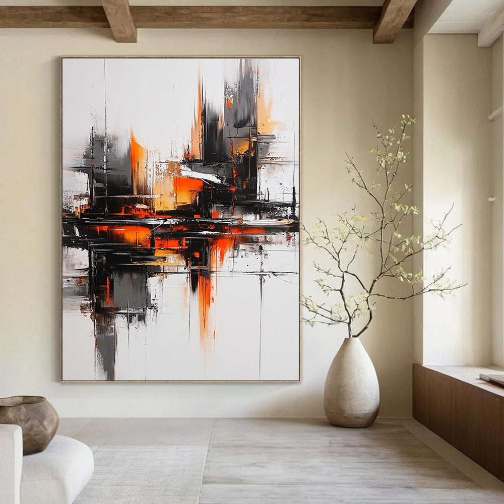 Fascinated by the energy and dynamism of the city, the artist used bold orange, black, and white hues to create a chaotic yet captivating urban scene. The thick brushstrokes and contrasting colors represent the hustle and bustle of city life. In a city - lover’s home office, it fuels motivation and a connection to the urban rhythm, making the workspace feel alive. In a contemporary art gallery, it stands out as a powerful piece, sparking conversations about modern city culture and the impact of urban environments on art.Handmade Acrylic/oil painting on canvas, Unframed/Not stretched. Packing: Rolled and shipped in a solid tube. The painting come with EXTRA 2-3 inch white border around for stretching or framing. Delivery time: You will receive the painting around 7-12 days( 3-5 days to finish the painting, 5-7 days to your home.by Fedex And Dhl)