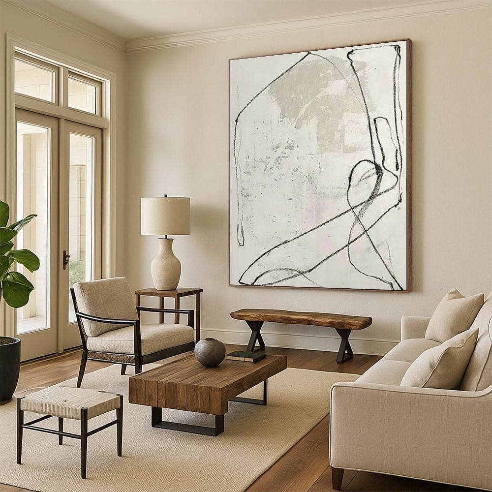 Subtle, sketchy lines. Bring understated artistry to bedroom headboards, promoting peaceful sleep.Handmade Acrylic/oil painting on canvas, Unframed/Not stretched. Packing: Rolled and shipped in a solid tube. The painting come with EXTRA 2-3 inch white border around for stretching or framing. Delivery time: You will receive the painting around 7-12 days( 3-5 days to finish the painting, 5-7 days to your home.by Fedex And Dhl)